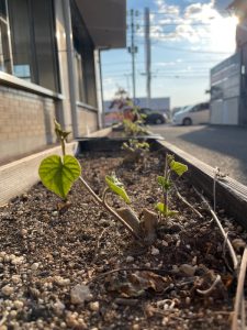 冬間近の気温となりつつあるのに、体を毛布で包み込む様なお天道様の温かさに刺激を受けたか、芽を伸ばし始ました。
