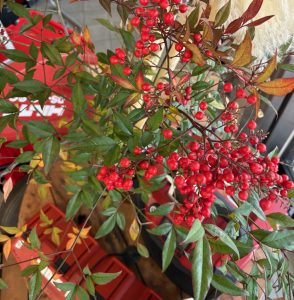 その花瓶のすき間にそっとマンリョウの枝木を加えてみる。
